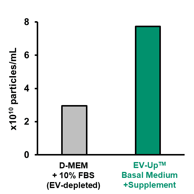 The number of EV particles released from MSCs cultured in EV-Up™ was approximately 2.6-fold higher than that from MSCs cultured in conventional medium.
