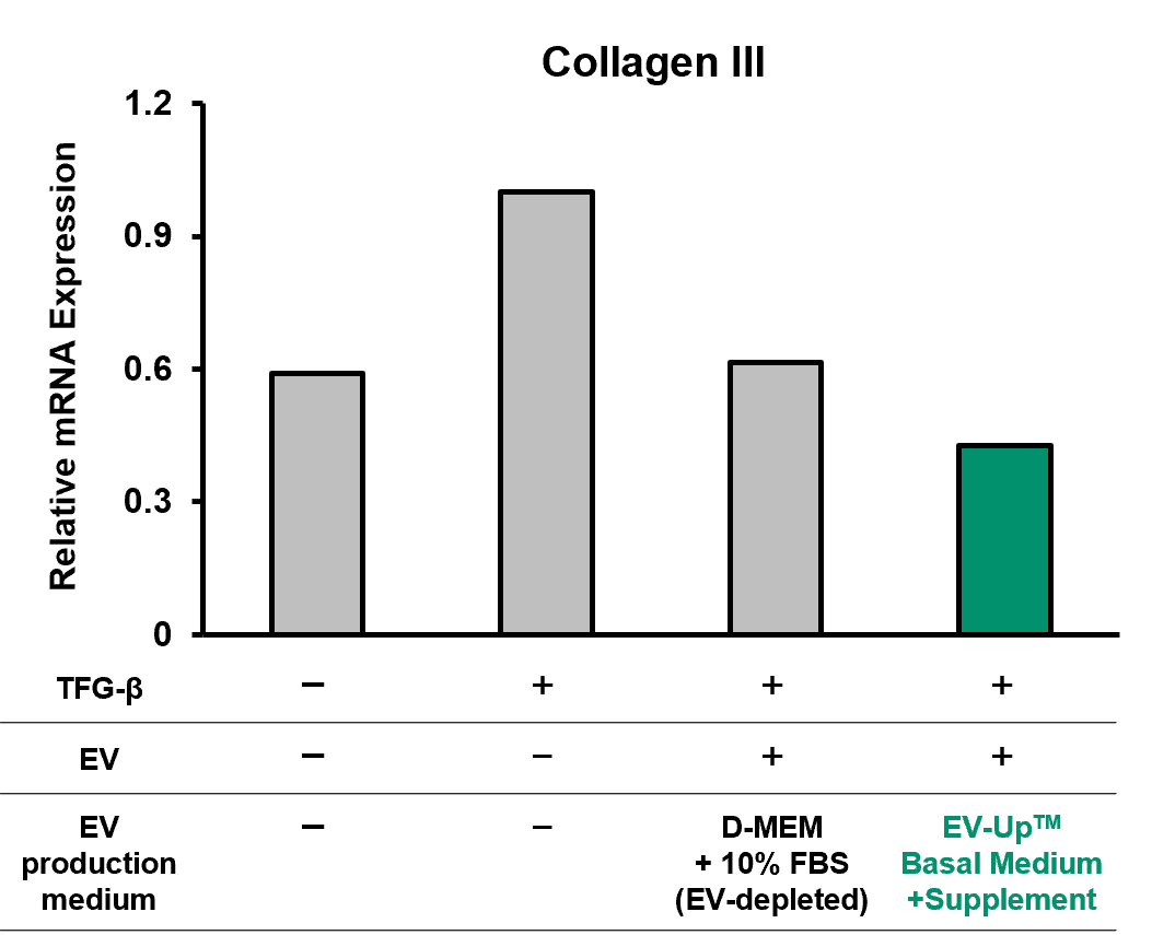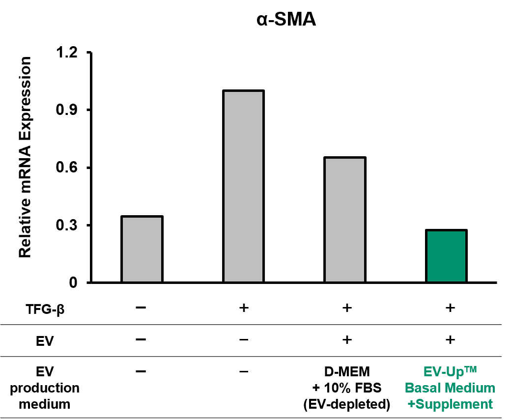 EVs produced from MSCs cultured in EV-Up™ exhibited stronger antifibrotic activity compared with those produced in conventional medium.