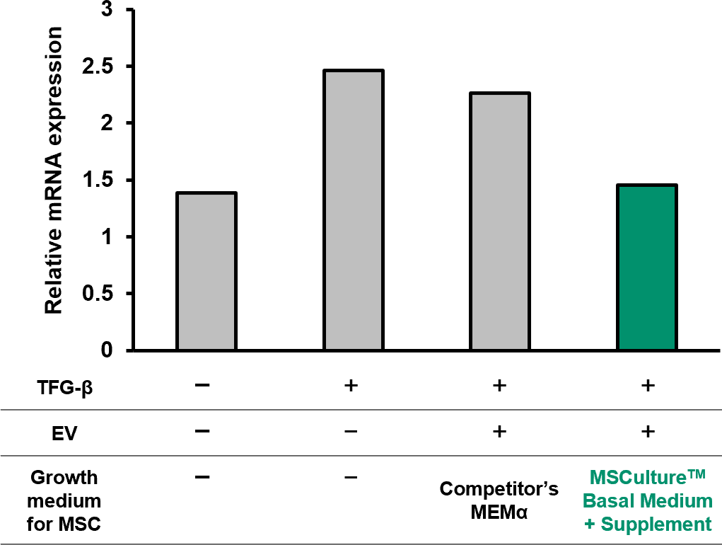 EVs derived from MSCs expanded with this product suppressed TGF-β-induced collagen V expression.