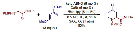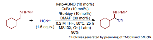 Keto-ABNO is a nitroxy radical type oxidation catalyst. Amines are oxidized to their corresponding imines efficiently with copper/keto-ABNO. By reacting of generated imine with a nucleophilic agent, α-amino acid derivative can be obtained. Also, the treatment of imine with a nucleophile gives stereoselective product when chiral ligand is used as asymmetric reaction.