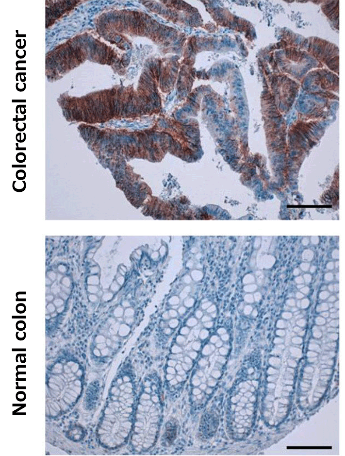 A novel anti-CD44 variant 9 monoclonal antibody C44Mab-1 was developed for immunohistochemical analyses against colorectal cancers