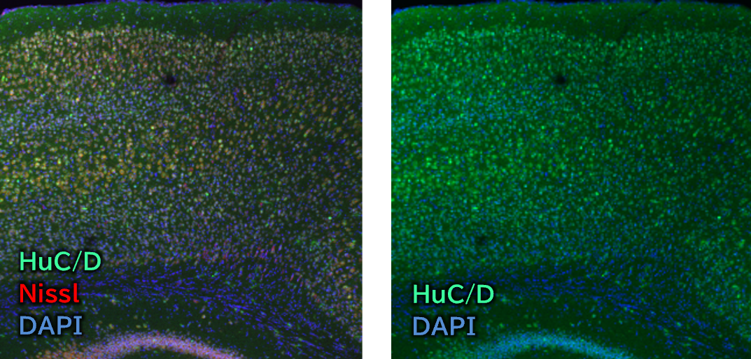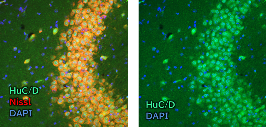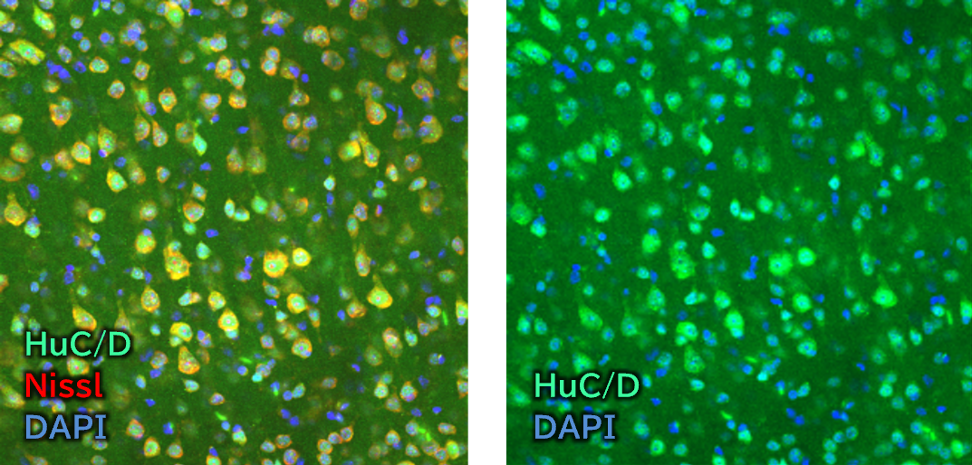Hu proteins are RNA-binding proteins which are thought to regulate mRNA stability and translational efficiency. Among the Hu proteins, HuB, HuC, and HuD are specifically expressed in neurons and contribute to neuronal differentiation and maintenance. In immunohistochemistry, anti-HuC/D antibodies are commonly used as neuron-specific markers.